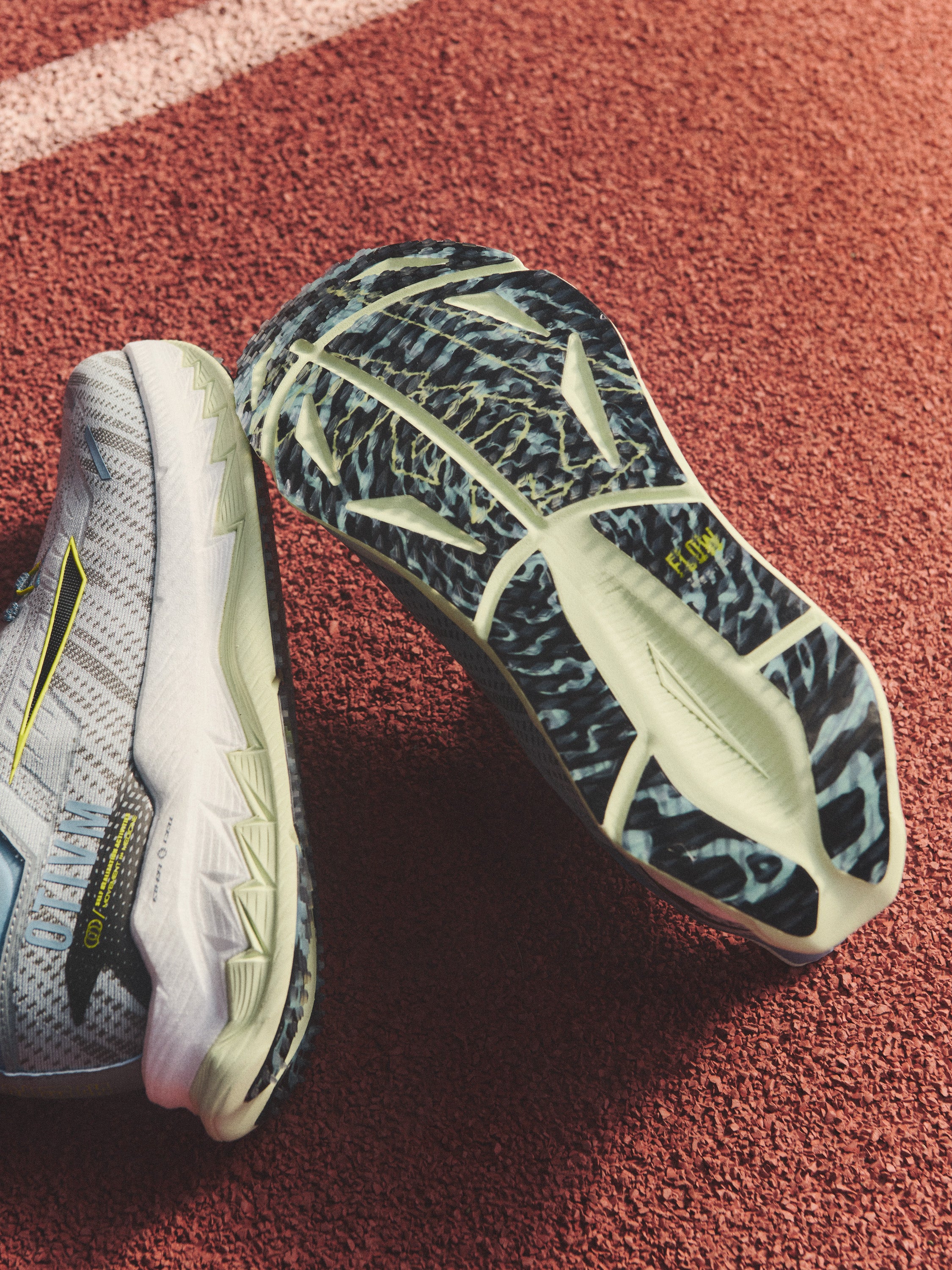 A multi-functional midsole system featuring 3-axis geometry, dual-tuned high-performance racing foams, and an anatomical contoured last to deliver a fast,comfortable ride—without the need for a carbon-fiber plate.